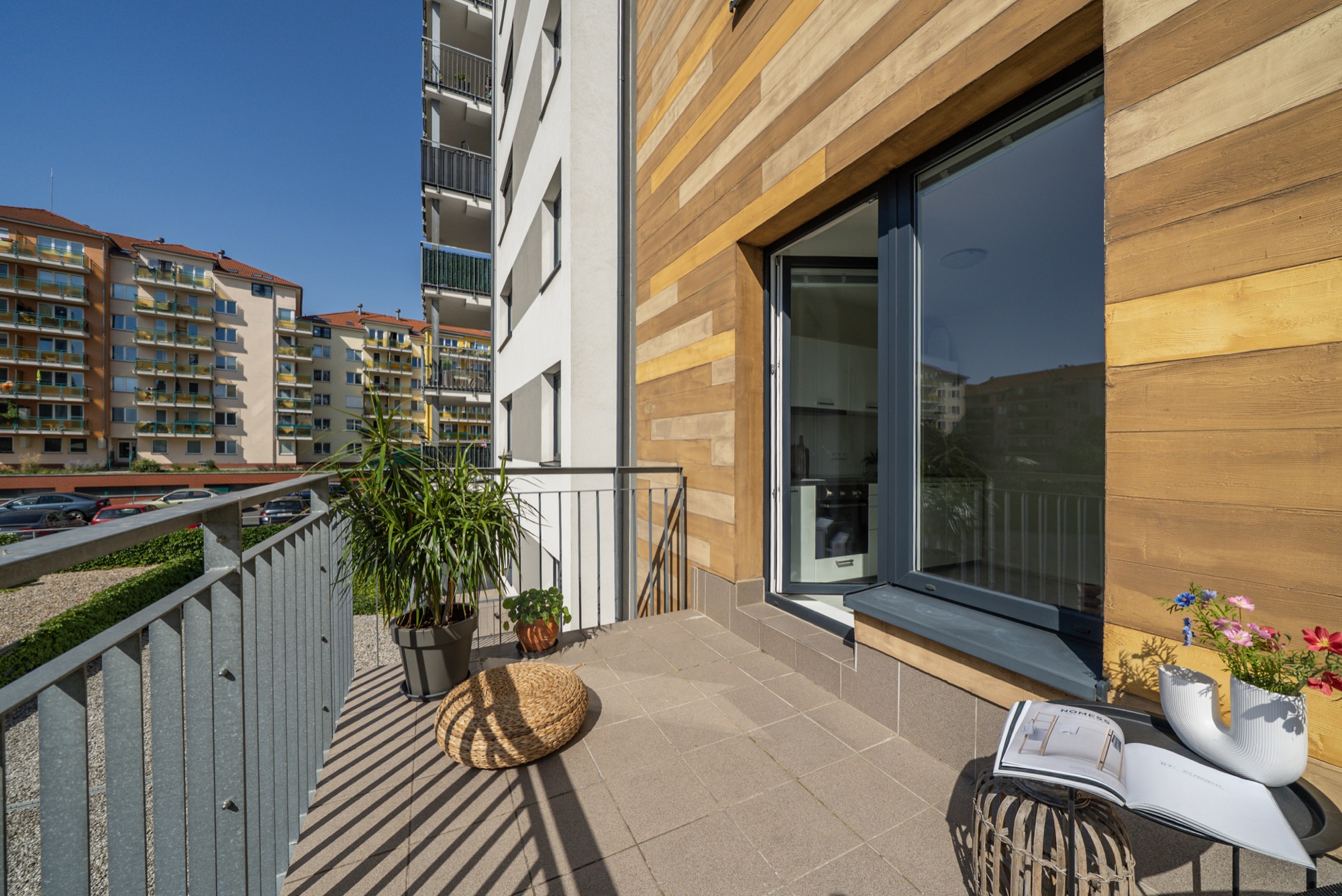 Na prodej je byt 1+kk 35,4 m2 + balkon 8,4 m2.