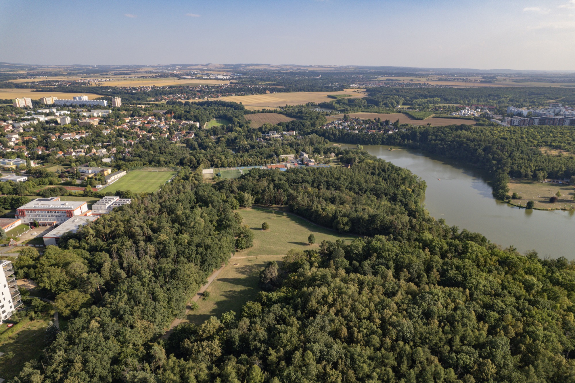 Prostorný balkon, v novostavbě od FINEPu (z roku 2015), a Hostivařská přehrada za domem!